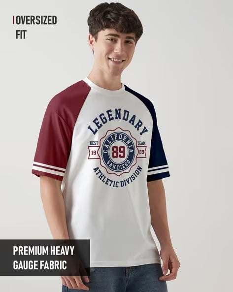 CRAZYMONK Men Typographic Print Oversized Crew-Neck T-Shirt